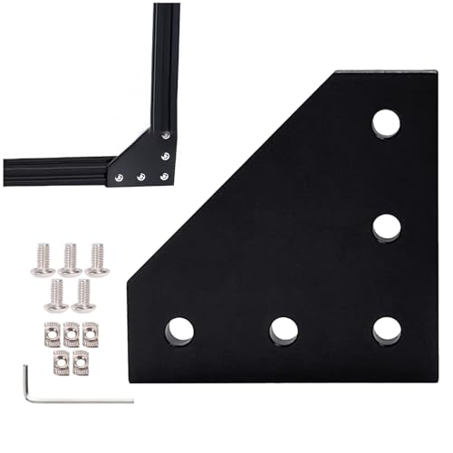 TVETE コーナーブラケットプレートはL形の90°接続用アクセサリーで、5穴設計。アルミ製で強度があり、スクリュー&ナット付き。インストールが簡単な黒色のサイズは60mm x 60mmです。