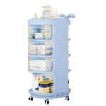 MEMETAROのベビーワゴンは、キャスター付きで移動便利な4段収納ワゴンです。引き出しと取っ手があり、多機能で大容量。赤ちゃんのオムツ収納にも最適で、かわいいデザインが魅力です。