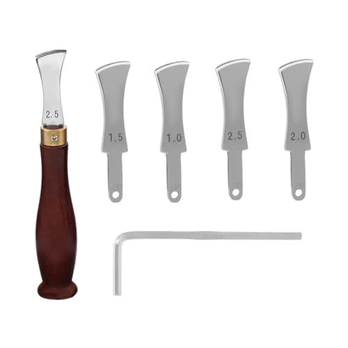 TVETEのレザークラフトツールキット。玉捻、念引き、フチ捻などの革処理用具が揃い、1mmから2.5mmまでの仕上げが可能。ステンレス製で分解簡単、木材ハンドル付き。