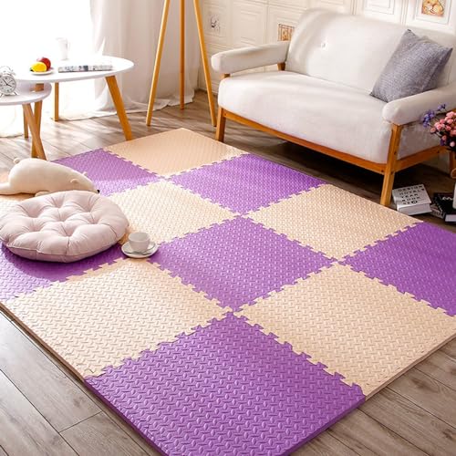 厚手のカーペットタイルジョイントマット。無地で滑り止め加工。子供の遊び場や自宅用に最適。30x30x1.2cmの24枚セット。サラっとした手触りで高反発、収納も便利。清潔で静かな空間を提供します。