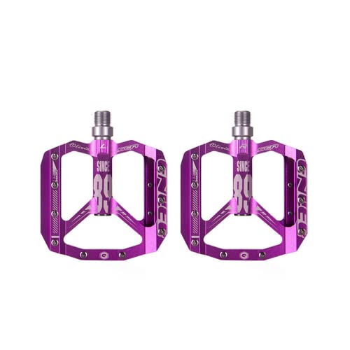 自転車用アルミ合金製フラットペダル。軽量で滑り止め機能付き、耐久性に優れたデザイン。ロードバイク、クロスバイク、マウンテンバイクなど多様な自転車に対応。2個セット(パープル)。