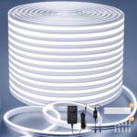 Lamomo 10M LEDテープライトは防水仕様で高輝度、調光可能。折り曲げ自在、切断可能で長寿命。24Vの昼光色タイプで室内外の装飾に最適。電源と調光器付き。