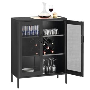 LAND·VOI スチールキャビネット 3段 扉付き収納棚 メタルメッシュ通気ドア 可動棚 キッチン リビング収納 キャビネット おしゃれ お酒棚 食器棚 幅80×奥行40×高さ101cm 組み立て必要 ブラック