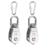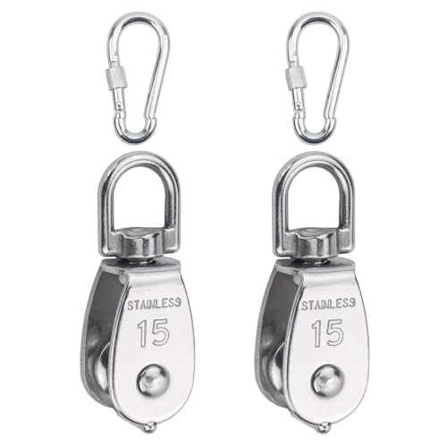 YandongのM15ステンレス製プーリーは、耐荷重35kgの小型ローププーリーです。SUS304素材使用で、滑車ローププーリーとして貨物輸送に最適。スイベル式とカラビナ付きの2個セット。