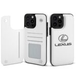 レクサス iPhone 15 手帳型ケース。携帯電話用でカード収納可能、強化ガラス使用。スタンド機能付きで擦り傷防止、全面保護、耐衝撃設計。