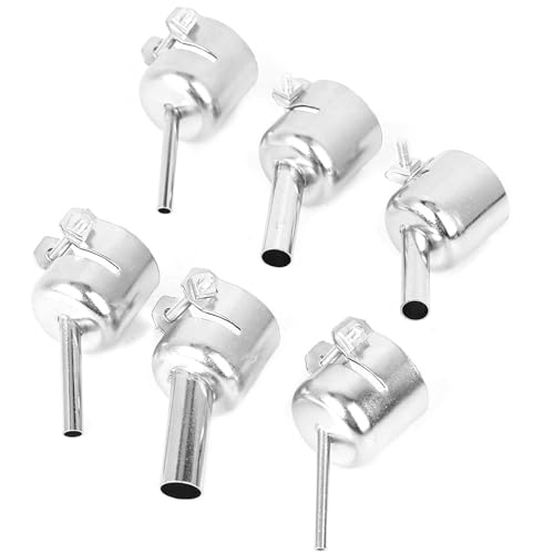 ヒートガンアタッチメント6個セット。短い斜めノズルと丸型亜鉛合金製。熱風を利用してはんだ付けや修理に最適。サイズは3/4/5/7/8/10mm対応。