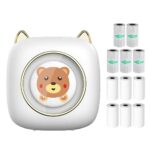 ポータブルサーマルプリンターはBT接続で、203DPIの解像度を持つ。DIYハンドクラフトやノート作成に最適。6ロールの感熱紙と5ロール付き。