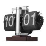 ユニークなフリップクロック。ビンテージデザインのメカニカルデジタルテーブルクロック。木製ベース付き高級クラフト。12時間バッテリー駆動。