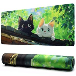 Benvo マウスパッド 超大型 防水 ゲーミング マウスパッド 90*40cm キーボードパッド 滑り止めゴム底 滑り止め マウス対応 耐洗い表面 快適操作性 (猫)