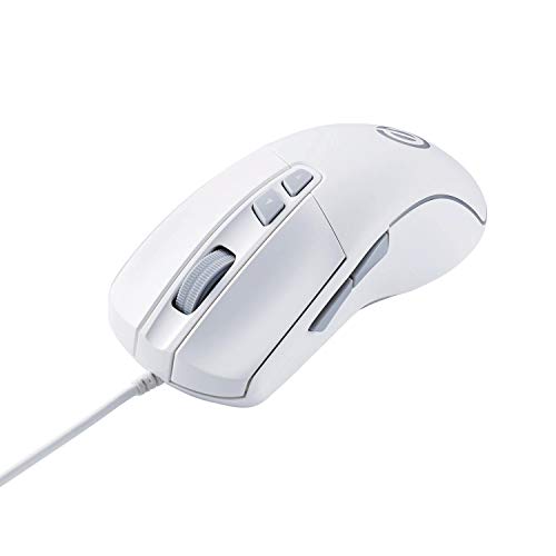エレコムのゲーミングマウスM-G01URWHは、5ボタン、8000万回耐久スイッチ、高性能ゲーミングセンサーを搭載。DPIは700~6200の4段階切替可能。ホワイトカラーのスタイリッシュなデザイン。