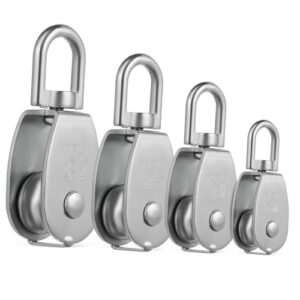 Parliky 4個ステンレス製シングルロープ滑車ブロック 転式リフトホイール 吊り上げ作業用索具ロープ滑車