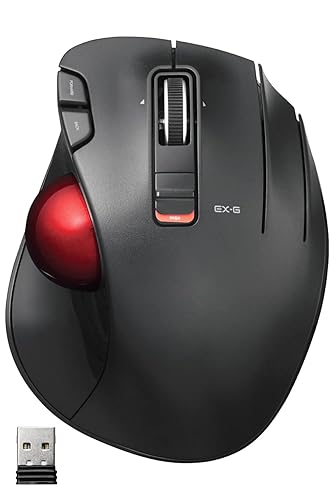 エレコムのワイヤレストラックボールM-XT3DRBK-Gは、親指操作の赤玉を備え、6ボタンとチルト機能で便利な左右スクロールが可能。ゲーミンググレードの光学センサーを搭載し、ブラックデザインがおしゃれです。