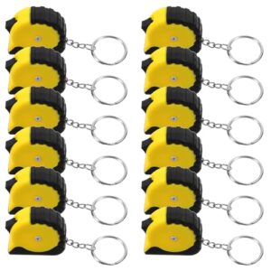 Luxshiny(ラックスシャイニー) 格納式ミニメジャーキーホルダー12個 ポータブル小型スチール巻尺 イエローケース付き 外出先での測定や工業用コンパクトツール