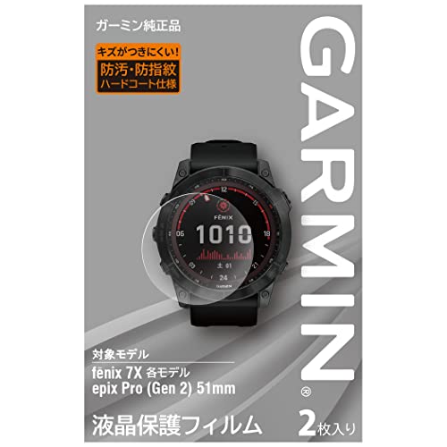 ガーミンの液晶保護フィルムは、fenix7x専用サイズで2枚入りです。メーカー純正の日本正規品で、画面を傷や汚れからしっかり保護します。耐久性があり、簡単に貼り付け可能で、クリアな視認性を保ちます。