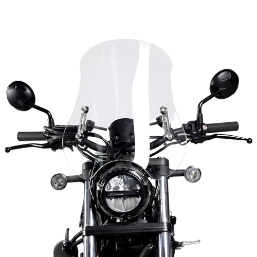 Entrotech rebelのウインドスクリーンは、レブル250/500/1100、エリミネーター、CB650R用です。風防効果で虫や雨を防ぎ、クリアまたはスモークの45cmサイズ。日本語説明書付き。