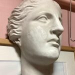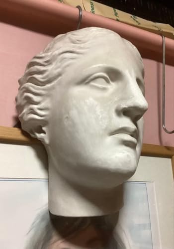 古典的な白いプラスター彫刻の頭部。サイズは縦24cm、横30cm。美しいディテールと滑らかな仕上げが特徴で、インテリアのアクセントに最適です。耐久性があり、どんな部屋にも合うエレガントな一品です。