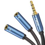 2分配ケーブル 100cm MillSO 4極 分岐 イヤホンジャック 二股 音楽シェア ボイスチャット対応。3.5mmオーディオ分配ケーブル(4極メスx2-4極オス)。金メッキ端子、高耐久、イヤホン分配器、ヘッドホン延長。カラー:ブルー。