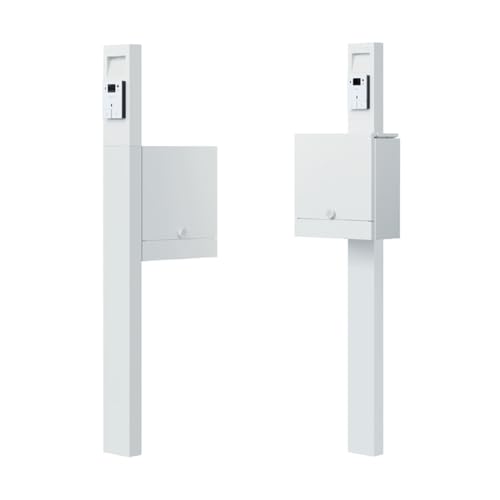 ナスタの門柱・郵便ポストと防犯カメラ付きインターホンセット、クオールモデル。ホワイトカラーで、照明なしのシンプルなデザイン。防犯対策に優れ、郵便受け一体型で実用性も兼ね備えています。
