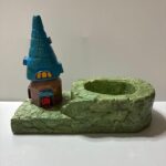 モルタルデコ風のファンタジーなデザインの青い屋根の植木鉢です。独特なテクスチャーと色合いが、あなたのガーデンやインテリアに彩りを加えます。耐久性も高く、様々な植物に対応可能です。