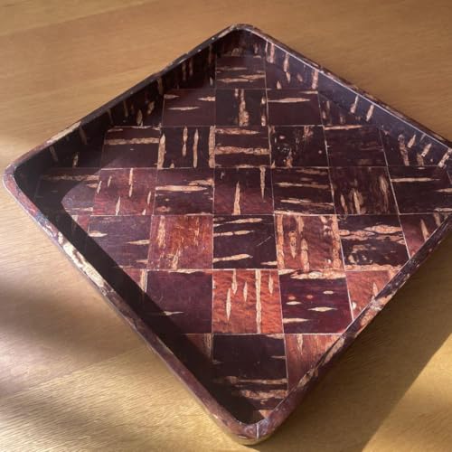 桜皮細工のお盆は、正方形の市松模様が特徴の伝統的な民芸品です。桜の樹皮を使い、軽量で丈夫な仕上がり。食卓を彩る工芸品として人気で、贈り物や日常使いに適しています。