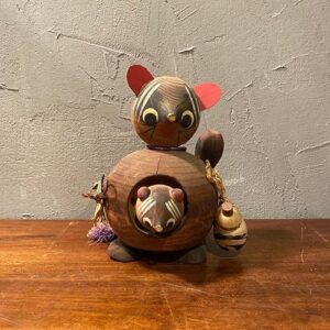 レトロ 木製 狸置物 縁起物 親子狸 こけし 工芸品 民芸品