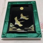 漆塗りの電話帳・住所録「飛翔に松」は、金彩細工が施された美しい製品です。伝統的な技法を用いて、耐久性と美しさを兼ね備えています。塚田外志男氏が手掛けた逸品で、特別なギフトに最適です。