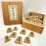 天上作の黄楊彫埋仕上の将棋駒セット。錦旗風フォントで美しく彫刻されたデザインが特徴。ケースには文字書きが施され、高級感あふれる一品。将棋愛好者必見のアイテムです。