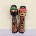 E-4 木彫り人形ペアは、日本の伝統工芸であるニポポの置物です。2体セットで、民芸品として記念品に最適。手作りの温もりが感じられ、インテリアにもぴったりです。
