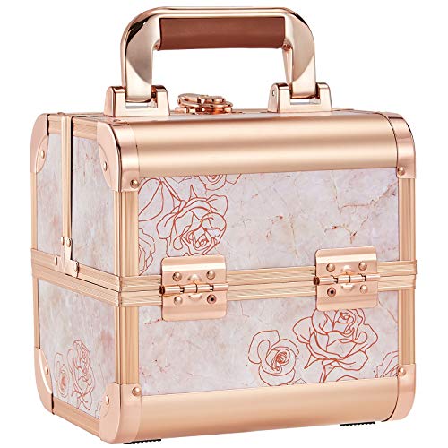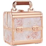 Costravio メイクアップトレインケースは、2段タックルトレイとミラー付きのポータブルロック可能なキャリーケース。収納力抜群で、ローズゴールドのデザインが魅力的な女性向けオーガナイザーです。