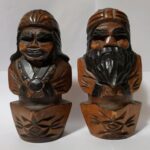アイヌ民族の伝統工芸品、アイヌ木彫りのニポポ人形セットです。男女2体がセットになっており、独自の文様が施されています。民族的な美しさと温もりを感じる作品で、インテリアやコレクションに最適です。