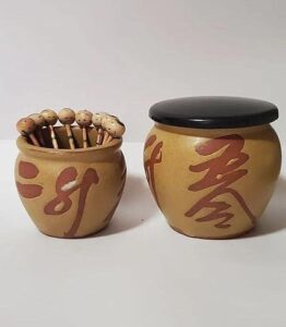 こけし 陶器壺の中で眠るこけし民芸品 工芸品