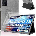 Wpawa HT10/HT10-A/TechZen HT20用のケースカバーと保護フィルムセット。10.1インチ、キャンバスのような質感。二つ折りスタンド、多視角調整、磁気吸引。全面保護型、擦り傷防止、耐汚れ、持ち運びに便利。カラーはグレー。