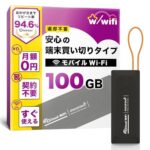 【w/wifi】モバイルポケットWiFiルーター100GB。契約不要、返却不要で端末買い切り。月額費用なし、追加チャージ10GB~可能。365日有効、マルチキャリア対応、キャンプや車内利用に最適。
