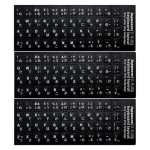 キーボードシール 3枚入りパック キーボードシール キーボード文字交換ステッカー ぼやけたキーボードテキストを修復 ユニバーサルキーボードステッカー文字 仮名入力方式キーボードステッカー 防水ユニバーサルキーボードステッカー トレースを残さない ラップトップおよびデスクトップ用(黒地 白文字) (日本語)