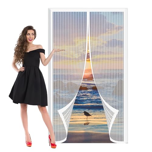 玄関網戸 玄関カーテン 76 x 196 cm マグネット開閉式出入り楽々自動で閉まる蚊帳虫よけマグネット式網戸カーテン出入り楽々勝手口口ドアベラダラス用, ホワイトの高価買取ITEM