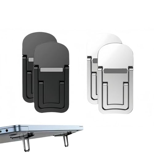 MANJIAMEI ノートパソコンスタンド キーボードスタンド 2組セット。3段階高さ調整、折り畳み式、滑り止め、放熱対策。ラップトップ、タブレット対応の人間工学設計、持ち運び便利。カラー: ブラック+銀。