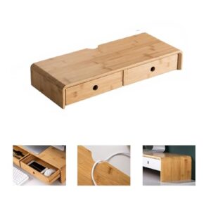モニター台 机上台 パソコン台 PC台 卓上 人間工学デザイン 二段式 デスク上置棚 パソコン台 机上 収納 蟻組仕様 木製 完成品 引き出し付き 植物オイル塗装仕上げ オフィスデスク用 モニター ノートパソコン デスク整理 キーボード収納 スマホ収納 パソコンスタンド (60*20*8CM,オリジナルカラー【ドロワー】)