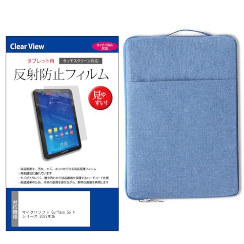 2023年版マイクロソフトSurface Go 4用のインナーケースと保護フィルムのセット。10.5インチ対応、持ち運び便利な取っ手付き。デザインはインディゴで、しっかりとした保護性能を提供。
