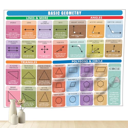 PARTH iMPEX 大型教育算数ポスターは、56インチ x 45インチのサイズで幾何学的な形や三角形、角度を描く数学テーマの装飾バナーです。中学生や高校教師に最適で、洗える生地製。