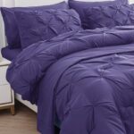 LANE LINENの7ピースクイーン掛け布団セット。ピンタックデザインのパープル色。掛け布団、シーツ、枕カバーなど含む寝具セットです。