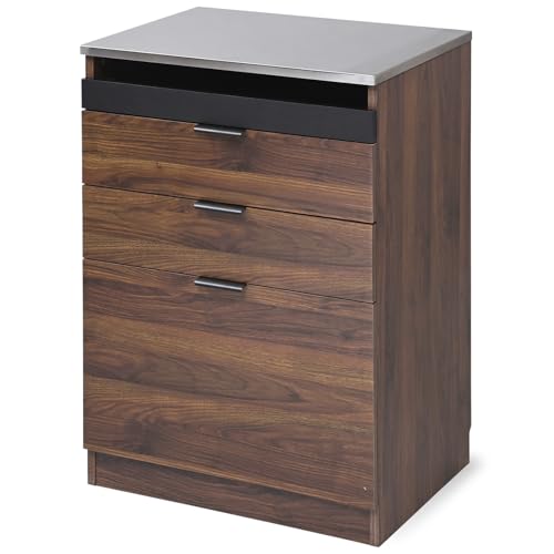 Moca Company Stela ステンレス天板キッチンカウンターは、幅60cm、奥行45cmのロータイプです。引き出し付きで、食器棚やカップボード、キッチンラックとして便利。色はブラウンで、スタイリッシュなデザインが魅力です。