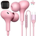 タイプC イヤホン 有線 マイク付き 磁気設計 カタル型 通話可能。iPhone 17/16 Pro MaxやiPad Pro等に対応。HIFI音質でテレワークやWeb会議に最適。かわいいピンクの収納ケース付き。