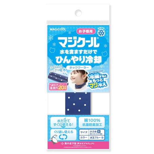 [大作商事] 子供用ネッククーラー(マジクール キッズ) 水を含ますだけで冷感持続 抗菌防臭 綿100% 薬品不使用 シリーズ累計1000万本突破 子供の暑さ対策に (水玉ブルー)の高価買取