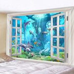 3D海窓デザインのタペストリー。パーソナライズ可能な風景プリント。サイズ150X130cm。家の装飾やヨガ、ソファクッション、壁カーペット、ビーチタオル、毛布、カーテンとして使用可。