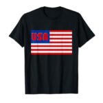 アメリカ国旗デザインの愛国的なTシャツ。頑丈な素材で、快適な着心地を提供。カジュアルなシーンにぴったりの一枚です。