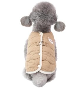 [Lady glamour] 犬用 ハーネス ベスト 防寒キルティング くまワッペン付き 胴輪一体型 ベスト型ウェア 小型犬 中型犬 お散歩 防風・軽量・裏地あったか (ベージュ, M)