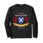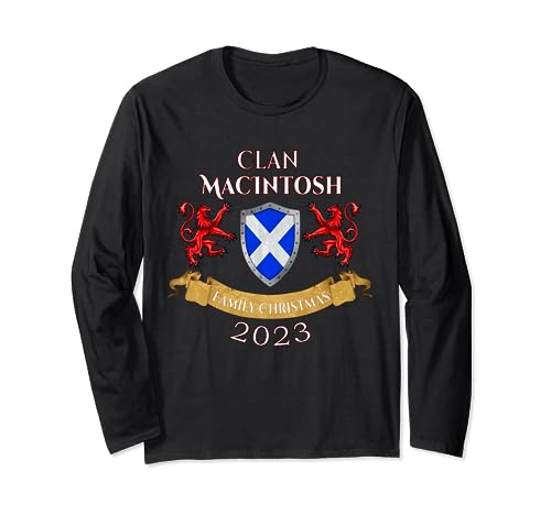 MacIntosh Family Christmas 2023 スコットランド一族の長袖Tシャツ。暖かく快適な素材で、家族の絆を感じるデザイン。クリスマスやカジュアルな場面に最適。