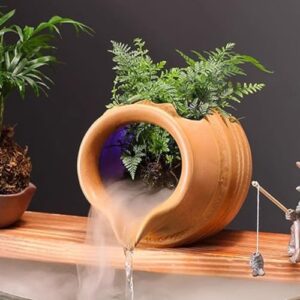 卓上の噴水 屋内と屋外の家庭の装飾テーブルデスクトップオフィス用のセラミック卓上噴水 デスクトップ噴水(Green)