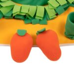 犬用知能開発マット【噛み癖対策強化版】。国際認証取得、留守番時の自遊び可能。スローフィーディング機能、ニンジン抜き式エサやり。ふかふか絨毯素材、多言語取扱説明書付属。オレンジ色のニンジンは音を出します。