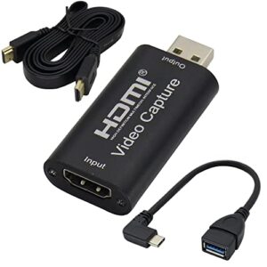 HCFeng 4K HDMIオーディオビデオキャプチャアダプター USBとHDMI延長ケーブル付き HDMIからUSB2.0レコードキャプチャデバイス ゲームライブ/ストリーミング放送/ビデオ会議/教育用 (ブラック)